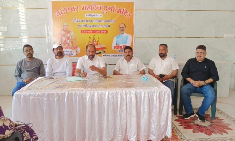 ठाकुर जय मंगल सिंह क्लब के अध्यक्ष राजेश सिंह ने संवाददाता सम्मेलन में बताया कि नगर वासियों को आहवान किया गया है कि 21 फरवरी से 28 फरवरी तक भव्य मंदिर में देवी देवताओं का प्राण प्रतिष्ठा किया जायेगा तथा 1 मार्च को विशाल भण्डारा का आयोजन किया गया है