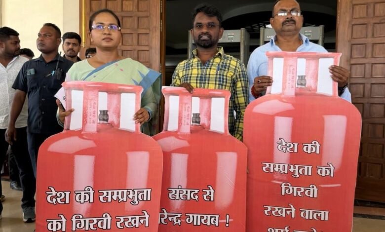 रसोई गैस के दाम कम करने और गैस की सप्लाई सुचारू करने की मांग को लेकर झारखंड के सत्ता पक्ष के विधायकों का केंद्र सरकार के खिलाफ प्रदर्शन