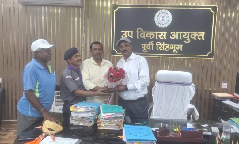 जमशेदपुर- आज भारत स्काउट एंड गाइड पूर्वी सिंहभूम जिला इकाई के संगठन आयुक्त नरेश कुमार के नेतृत्व में तीन सदस्यीय एक प्रतिनिधिमंडल जमशेदपुर स्थित उप विकास आयुक्त पूर्वी सिंहभूम के कार्यालय में पहुंचकर उप विकास आयुक्त ( भारतीय प्रशासनिक सेवा ) नरेंद्र पासवान से मिलकर उनका पारंपरिक रूप से स्काउट एंड गाइड के वर्ल्ड ब्रदरहुड स्कार्फ पहना कर एवं कैप प्रदान कर गुलदस्ता देते हुए सम्मानित किया