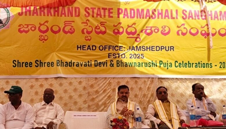 जमशेदपुर- झारखंड राज्य पद्मशाली संगम के तत्वावधान में शहर के एग्रीको क्लब हाउस में ‘श्री भवानारुशी स्वामी पूजा’ का भव्य आयोजन किया गया। इस धार्मिक एवं सांस्कृतिक कार्यक्रम में झारखंड समेत देश के विभिन्न हिस्सों से आए पद्मशाली समुदाय के लोगों ने बड़ी संख्या में भाग लिया और अपनी परंपराओं को जीवंत किया