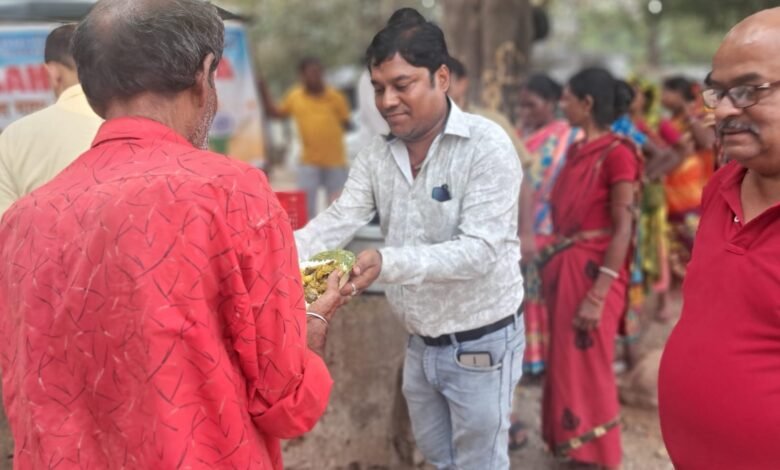 जमशेदपुर- आज हमारी संस्था “सहयोग से सेवा” द्वारा बाराद्वारी सब्जी बाजार में ग्रामीण सब्जी विक्रेताओं के लिए आयोजित मध्यान्ह भोजन कार्यक्रम एक अत्यंत भावपूर्ण और प्रेरणादायी अवसर बन गया। इस सेवा कार्य का सप्रेम प्रायोजन झारखंड कलाकार मंच के अध्यक्ष श्री संजीव बनर्जी ने अपनी सुपुत्री तीषा बनर्जी (एयर इंडिया में एयर होस्टेस, वर्तमान में सिंगापुर में कार्यरत) के जन्मदिन के पावन अवसर पर किया