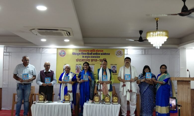 जमशेदपुर- सिंहभूम जिला हिन्दी साहित्य सम्मेलन/तुलसी भवन एवं छंदमाल्य कवि मण्डपम् के संयुक्त तत्वावधान में आयोजित छंदबद्ध रचनाओं की गीतमय प्रस्तुतियों के साथ छंदमाल्य भाग – 7 का आयोजन तुलसी भवन के मानस सभागार में सफलतापूर्वक संपन्न हुआ