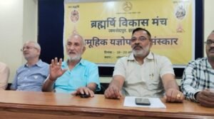 जमशेदपुर – ब्रह्मर्षि विकास मंच (रामनारायण शर्मा गुट ) जमशेदपुर द्वारा गुरुवार को तुलसी भवन में एक संवाददाता सम्मेलन आयोजित कर आगामी 19-20 अप्रैल 2026 को होने वाले सामूहिक यज्ञोपवीत संस्कार की जानकारी दी। मंच के केंद्रीय अध्यक्ष राम नारायण शर्मा, संरक्षक राम प्रकाश पाण्डेय, कार्यकारी अध्यक्ष सुधीर कुमार सिंह, महासचिव मुकेश कुमार और कार्यक्रम के प्रभारी प्रभाकर शर्मा ने संयुक्त रूप से संवाददाताओं को संबोधित किया
