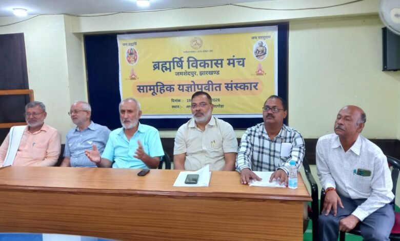 ब्रह्मर्षि विकास मंच द्वारा होने वाले सामूहिक यज्ञोपवीत संस्कार को लेकर बिस्टुपुर स्थित तुलसी भवन में एक प्रेसवार्ता आयोजित कर मंच के केंद्रीय अध्यक्ष राम नारायण शर्मा, संरक्षक राम प्रकाश पाण्डेय, कार्यकारी अध्यक्ष सुधीर कुमार सिंह, महासचिव मुकेश कुमार और कार्यक्रम के प्रभारी प्रभाकर शर्मा ने संयुक्त रूप से जानकारी साझा किया