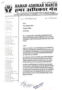 रांची- हमर अधिकार मंच का एक प्रतिनिधिमंडल अध्यक्ष दीपेश निराला की अध्यक्षता में झारखंड के लोकायुक्त श्री अमिताभ कुमार गुप्ता, पूर्व न्यायमूर्ति, झारखंड उच्च न्यायालय से मिलकर उनको पुष्पगुच्छ देकर बधाई दिया और उनको अपने द्वारा फुटपाथ विक्रेताओं, यातायात नियमावली और नागरिक सुविधाओं पर लिखित पुस्तक, जिसे क्रॉउन पब्लिकेशन ने प्रकाशित किया है, भेंट करते हुए एक ज्ञापन प्रेषित किया और मांग किया कि लोकायुक्त कार्यालय में भ्रष्टाचार के विरुद्ध लंबित 3000 से अधिक शिकायतों पर त्वरित कार्रवाई करते हुए उनके जांच में तेजी लायी जाय और झारखंड के 24 जिलों में व्यापक जागरूकता ड्राइव चलाया जाय, ताकि जहां-जहां भ्रष्ट आचरण हो रहा है, वहां आम जनमानस को लोकायुक्त की शक्तियों और कार्यों के बारे में जानकारी हो सके और वह लोग लोकायुक्त कार्यालय पहुंच कर भ्रष्ट आचरण के विरुद्ध अपना शिकायत दर्ज करवा सकें साथ ही उन्होंने हमर अधिकार मंच के विगत कार्यों जैसे आरटीआई कार्यशाला और मानव अधिकार कार्यशाला, सिविल राइट्स की जागरूकता, इत्यादि के बारे में लोकायुक्त को जानकारी दी।