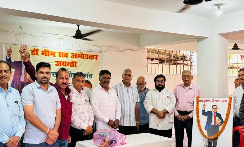 झारखण्ड चेतना मंच के तत्वाधान में आज आदित्यपुर रेल्वे शिव मंदिर के सभागार में बाबा साहब भीम राव अम्बेडकर जयंती झारखण्ड चेतना मंच के अध्यक्ष सुरेश धारी के अध्यक्षता में सम्पन्न हुई इस अवसर पर बच्चों के बीच में पाठ्य सामग्री वितरण किया गया