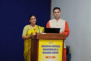 शिरोडा, (गोवा) – किसी भी प्रकार की बीमारी पर विजय पाने के लिए शारीरिक उपचार के साथ-साथ आध्यात्मिक उपाय करना अत्यंत आवश्यक है,” ऐसा प्रतिपादन महर्षि अध्यात्म विश्वविद्यालय के शोधकर्ता श्री शॉन क्लार्क और श्रीमती श्वेता क्लार्क ने किया। वे शिरोडा स्थित ‘गोमंतक आयुर्वेद महाविद्यालय एवं अनुसंधान केंद्र’ में ‘उपचार में अध्यात्म की भूमिका’ विषय पर आयोजित अतिथि व्याख्यान में बोल रहे थे