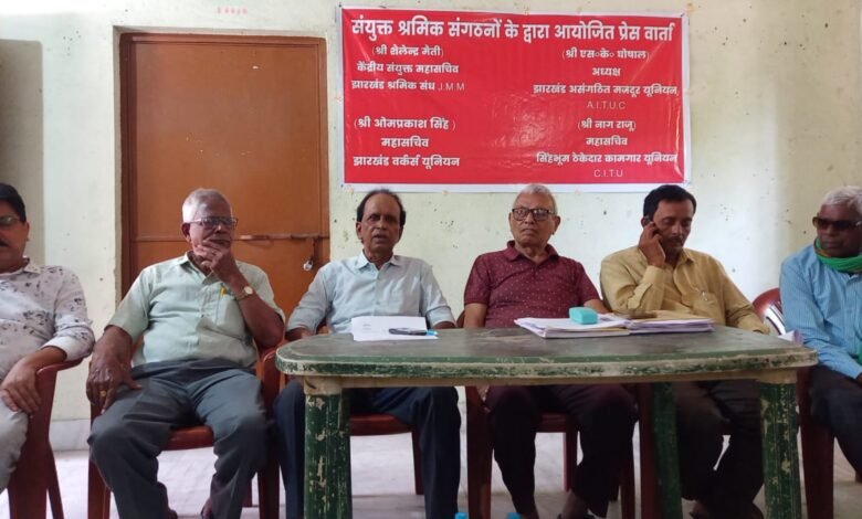परमानेन्ट एवं लगातार चलने वाले कार्यों में ठेका से काम कराना को दंडनीय अपराध घोषित करने एवं मजदूरों का अधिकार को सुरक्षित करने के लिए आंदोलन हेतु श्रमिक संघो का एक जुट होना