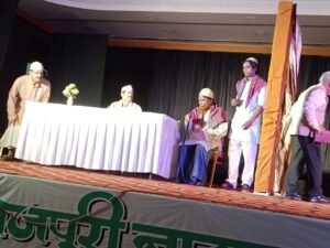 दूसरी प्रस्तुति थी जमशेदपुर की ‘मंच’ संस्था द्वारा श्रीमती अनिता सिंह के निर्देशन में विशु बासु कृत मूल बांग्ला हास्य व्यंग्य नाटक “शांति रक्षक” के भोजपुरी अनुवाद ,अमन के रखवार की । इस नाटक का भोजपुरी में अनुवाद किया था स्व विपुल चौधरी और डॉ महेंद्र प्रसाद सिंह ने।