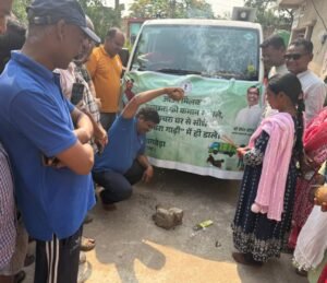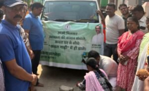 नारियल फोड़कर और अगरबत्ती दिखाकर कचरा वाहन को लोगो ने किया रवाना