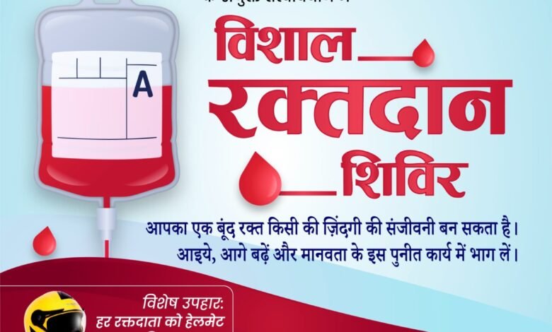 विशाल रक्तदान शिविर का होगा आयोजन एक बूंद रक्त जीवन की संजीवनी